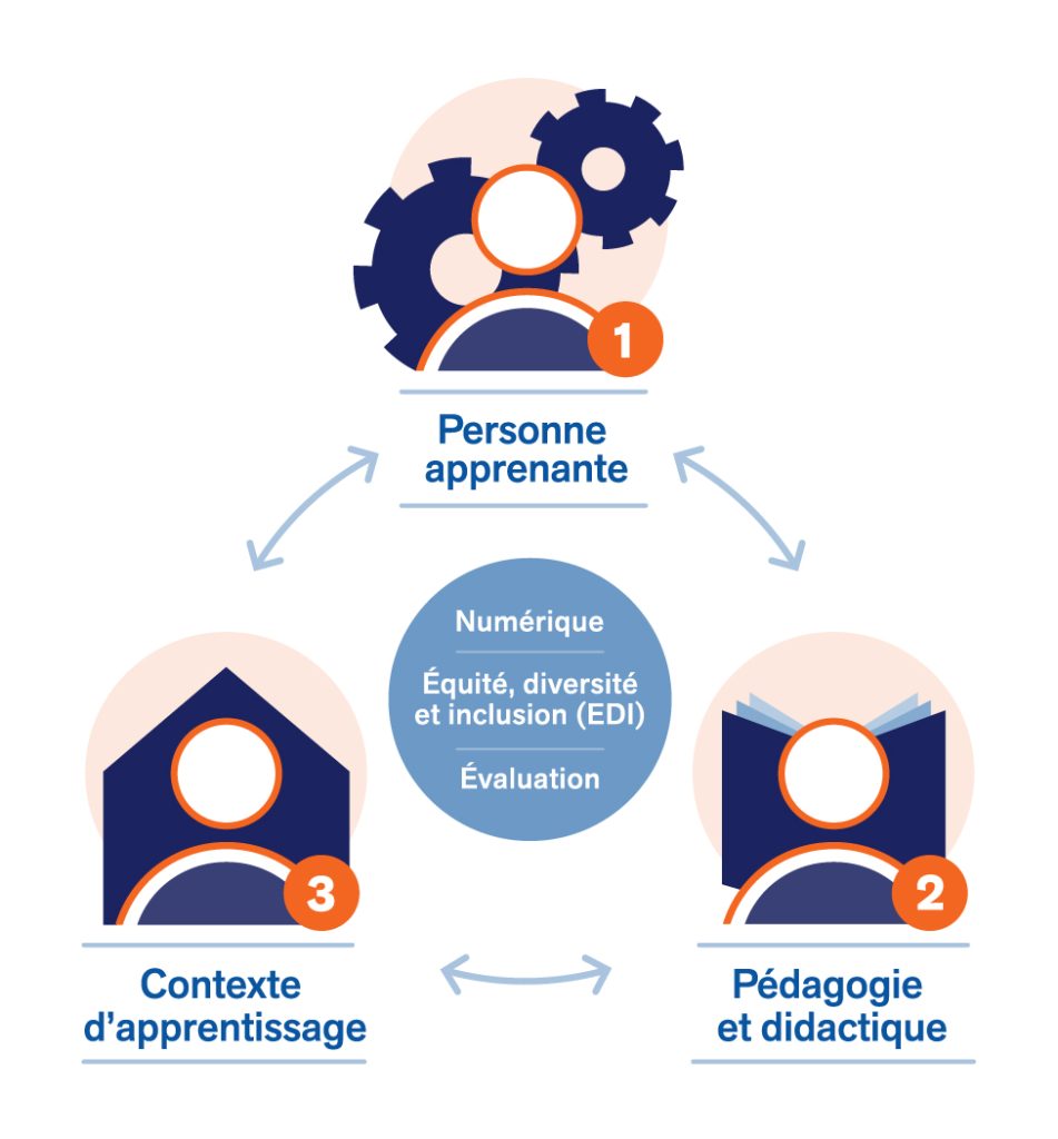 Les concepts de numérique, d’équité, de diversité et d’inclusion (EDI) et d’évaluation sont transversaux aux trois axes. Les exemples qui suivent visent à illustrer ce caractère transversal :