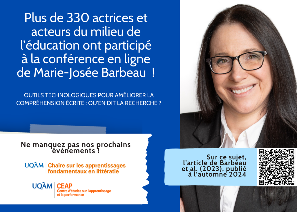 Merci à Marie-Josée Barbeau et à la Chaire sur les apprentissages fondamentaux en littératie pour ce riche partenariat avec le 𝗖𝗘𝗔𝗣 𝗨𝗤𝗔𝗠.